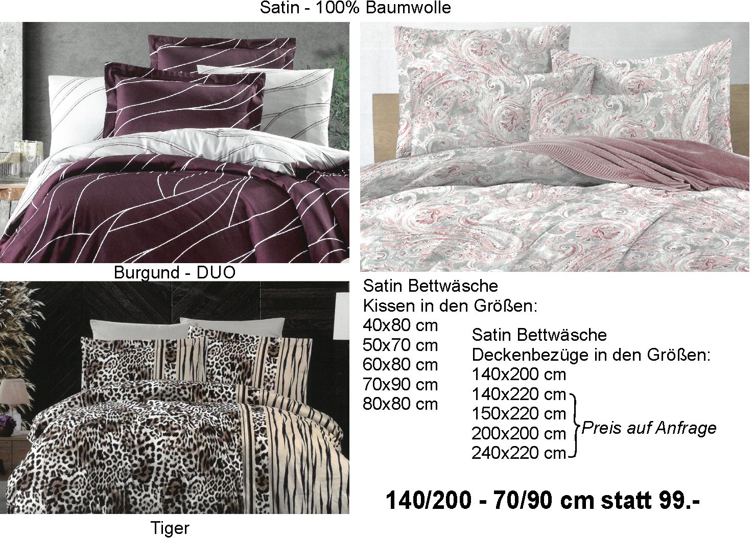 Satin Bettwäsche gemustert E-Mail 99,00 € 59,90 € Sie sparen: 39,10 € Herrliche weicher Satin! Farbe Tiger Lena Burgund-Duo Baisley Zur Wunschliste hinzufügen Produkt vergleichen Zurück zu: Satin-Bettwäsche Beschreibung Satin Bettwäsche 100% Baumwolle In den Größen: 140/200 60/80 cm 140/200 70/90 cm